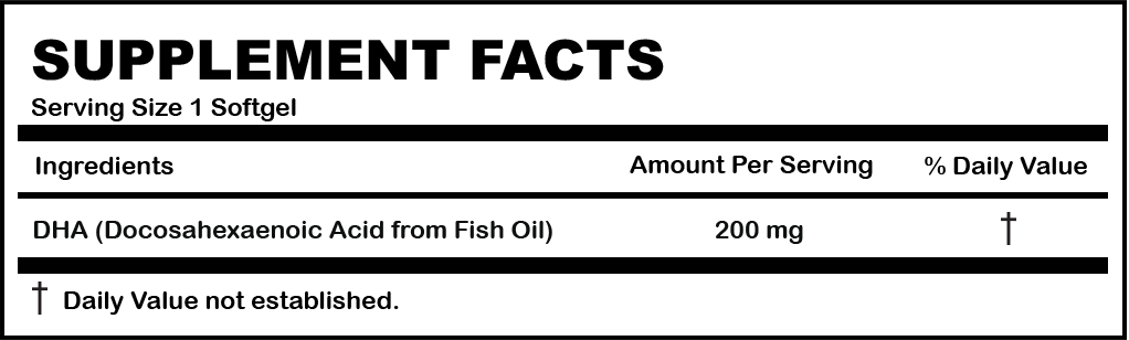 DHA is an essential Omega3- fatty acid for healthy mental and visual function. It is ideal as a prenatal and nursing supplement. DHA is also essential to proper eye and brain development within infants (before and after birth) and is an important component of human breast milk. DHA can replenish DHA in the mother or can be used to support healthy skin eyes joints and brain function.