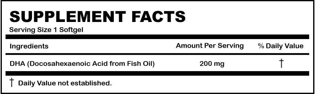 DHA is an essential Omega3- fatty acid for healthy mental and visual function. It is ideal as a prenatal and nursing supplement. DHA is also essential to proper eye and brain development within infants (before and after birth) and is an important component of human breast milk. DHA can replenish DHA in the mother or can be used to support healthy skin eyes joints and brain function.
